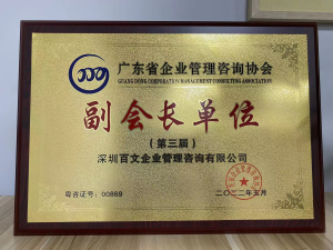 2022年5月,经广东省企业管理咨询协会审核批准,深圳百文企业管理咨询有限公司入选为协会副会长单位。